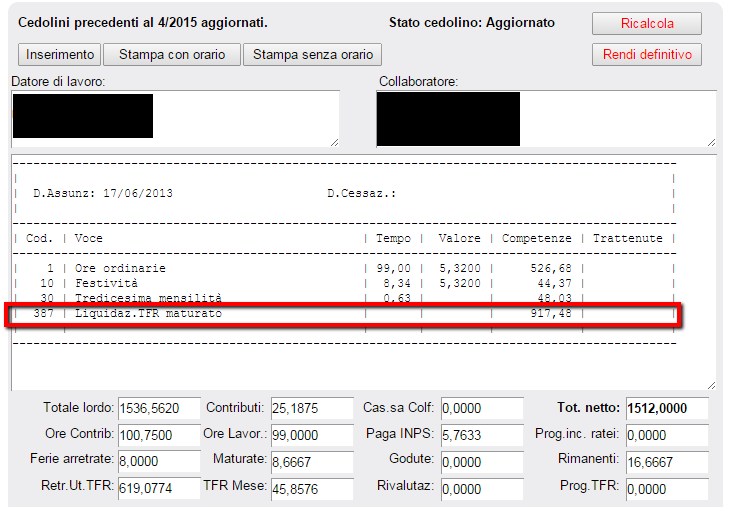 In questo modo trova selezionato sotto in automatico la voce liquida tfr maturato e calcoli il cedolino.